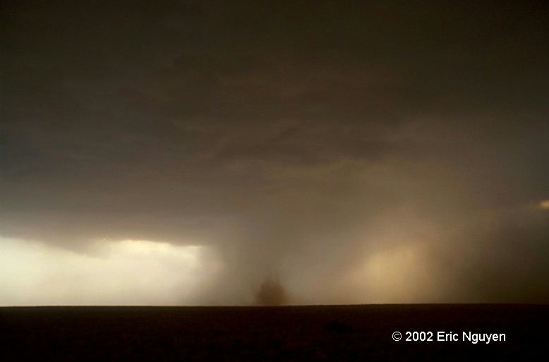 Discussion: We originally thought storms would fire in far SE CO / SW KS border, however storms rapidly fired a little east of that area. Classic to HP supercells formed pretty much everywhere from SW KS to C TX Panhandle. Our supercell near Goodwell, OK developed an unexpected multivortex tornado with no condensation until it was undercut. After that it was a mad dash to get away from the storm or stay ahead of it as it was produced baseball sized hail. Visibility was rather poor due to the amount of dust this storm suspended in the air. Towards dark we took video and stills of the lightning lit spiral updraft with a wallcloud on it. It was an amazing chase day!