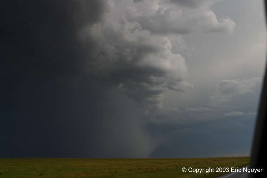 WY / NE PAN | STORMS FORMED ON A LEE TROUGH IN SE WY / NE PAN BORDER WHICH MOVED NE. DUE TO A POOR ROAD NETWORK WE GOT BEHIND THE STORM WHICH WEAKENED ANYWAY. MORE STORMS FORMED AND CONGEALED INTO A WEAK SQUALL LINE WITH A NICE GUST FRONT. | |