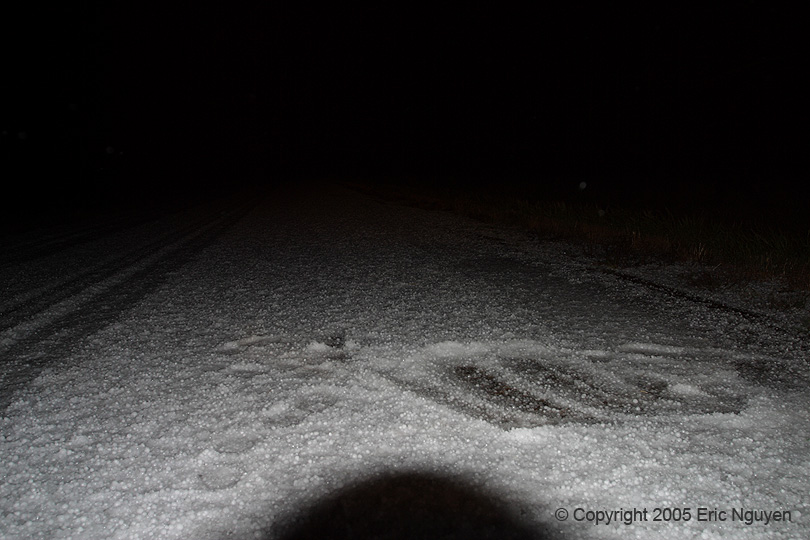 - Small hail of pea to marble completely covered the ground in a 1-2