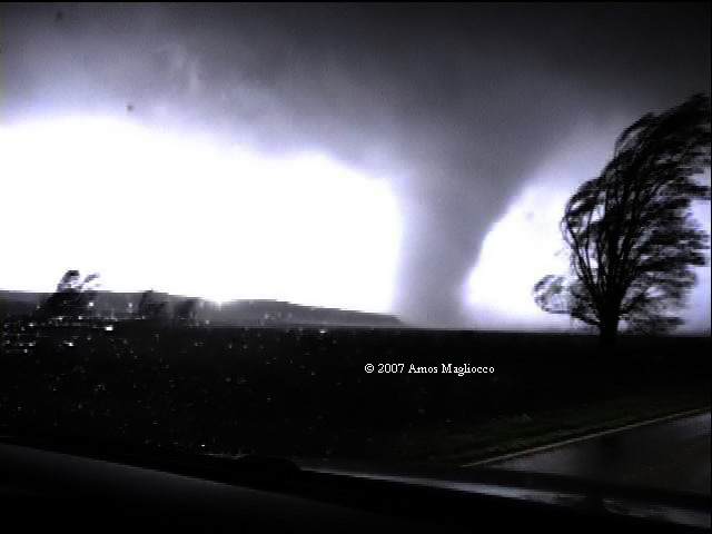 second image shows a video capture Amos took of the tornado 6 miles SSW of McLean, Texas,