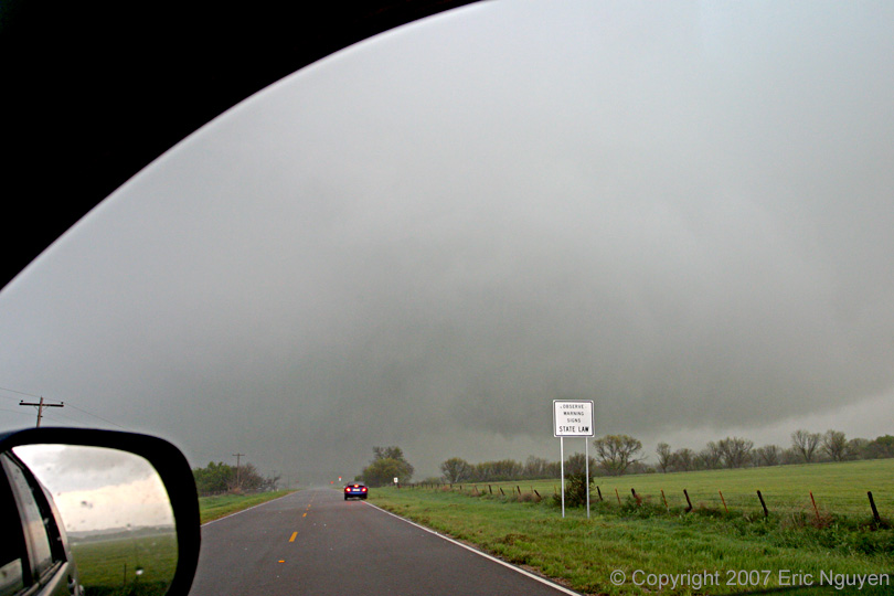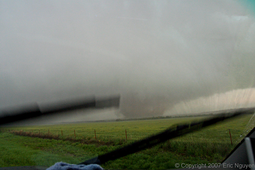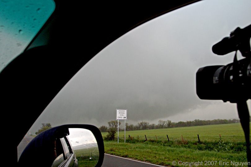 down around 1938 UTC. The center image shows the tornado as it crossed the road