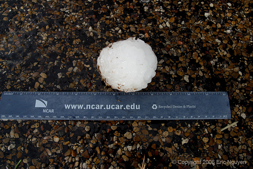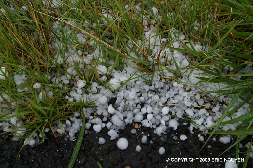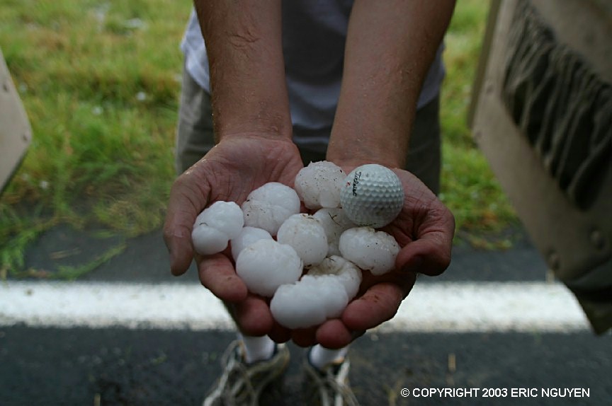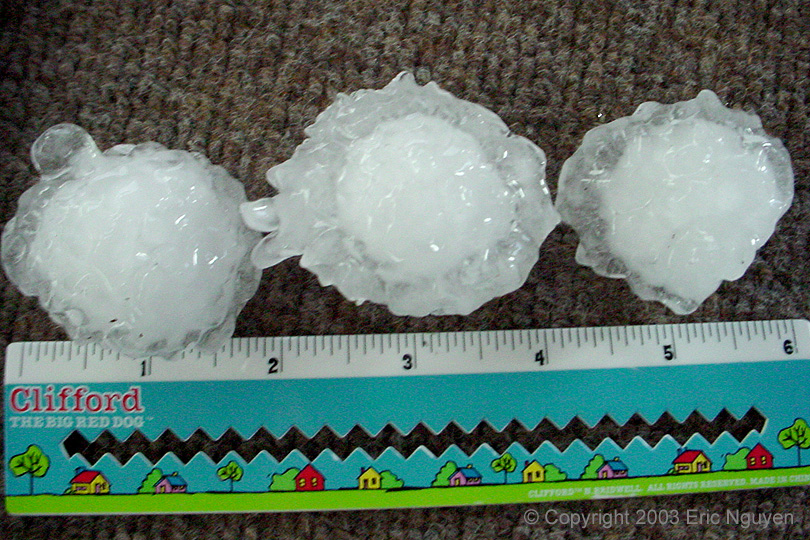 large hail fell near Woodson, TX on April 5, 2003. Meteorologist Steve Vanderburg