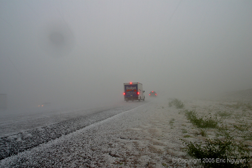 Quarter to golf ball sized hail pounding vehicles as they travel