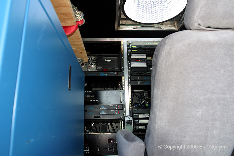 Inside, is the FC's station with laptops, radios, and sounding equipment.