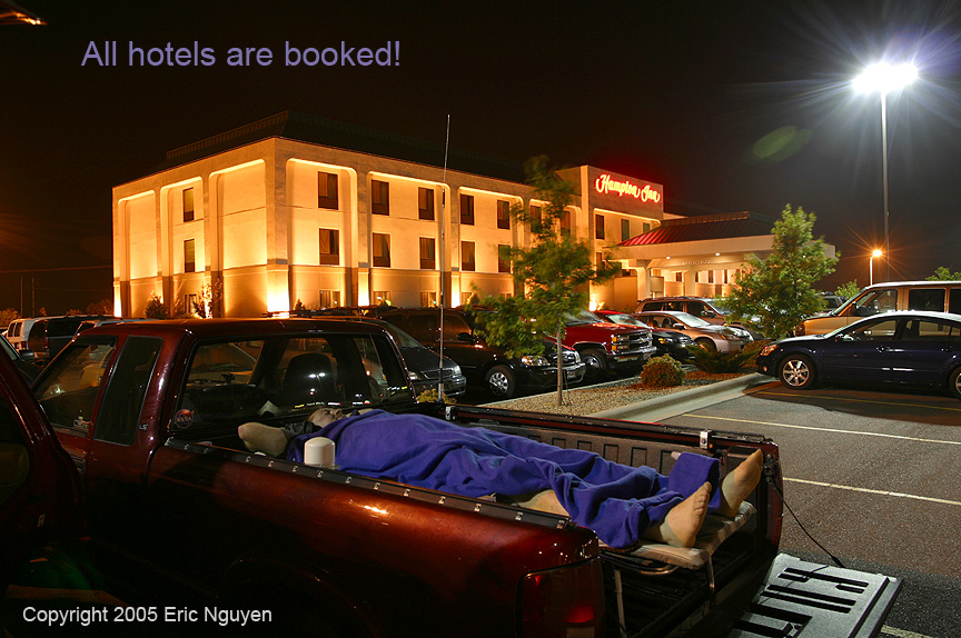 that weekend. So we had to sleep in the car with the windows rolled up as mosquitoes